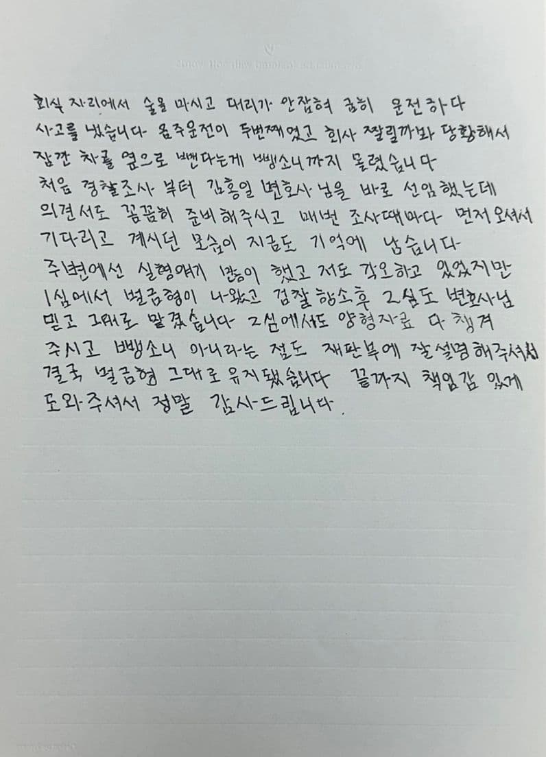뺑소니 아니라는 점도 재판부에 잘 설명해주셔서