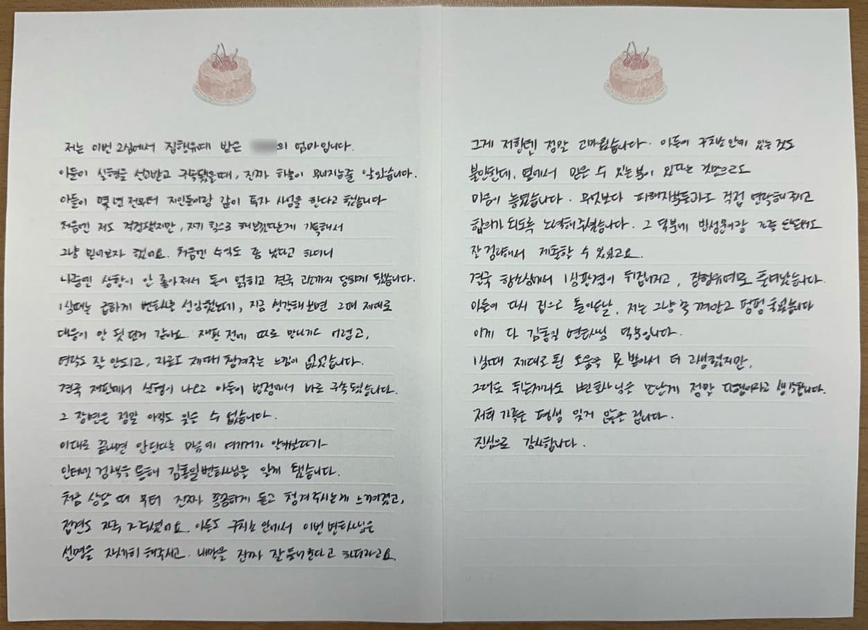 아들이 실형을 선고받고 구속됐을 때, 진짜 하늘이 무너지는 줄 알았습니다.